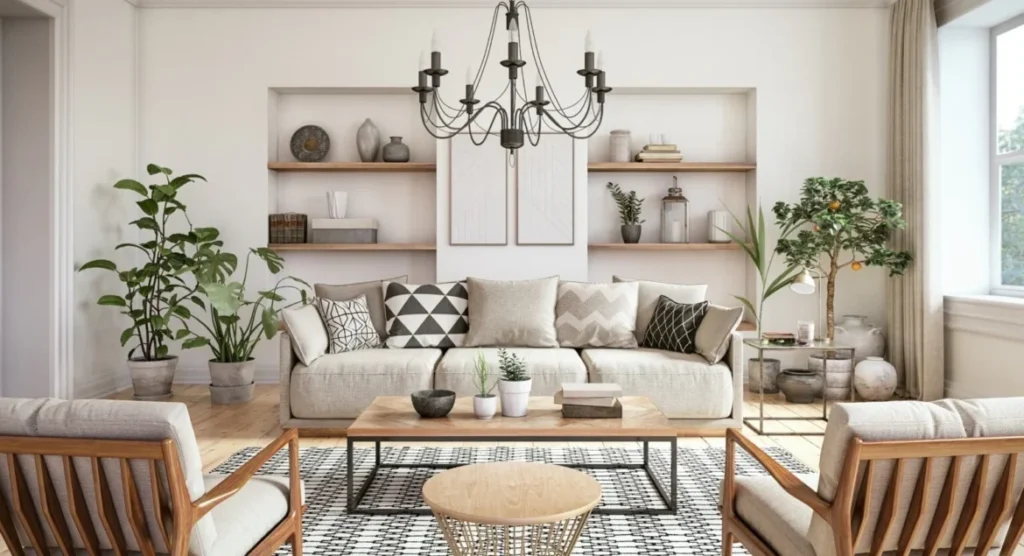Warna netral merupakan teras dalam reka bentuk Scandinavian. Putih tidak hanya memberikan kesan bersih dan segar, malah membantu memantulkan cahaya semula jadi untuk membuat ruang kelihatan lebih besar. Penggunaan perabot berwarna kelabu lembut atau krem semula jadi menambah dimensi tanpa menjejaskan nuansa minimalis. Dalam konteks tips pilih warna perabot untuk rumah gaya scandinavian, warna-warna ini perlu menjadi asas kerana ia mudah dipadankan dengan aksen warna lain dan tekstur seperti kayu atau tekstil alami.